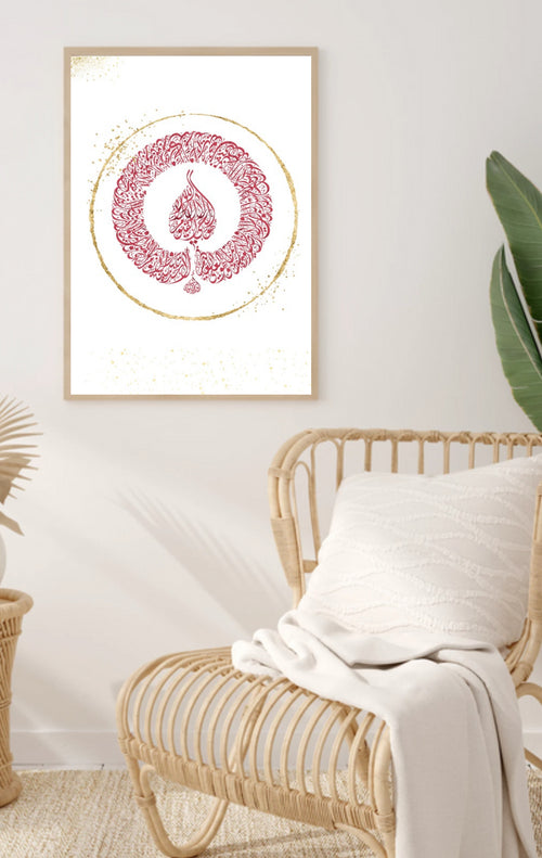 Minimalistisches Wandbild mit Rahmen – Moschee bei Nacht (Medina-Silhouette) -